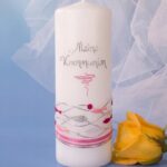 14110SG Kommunionkerze, Kelch, bunt-silber, Säule groß